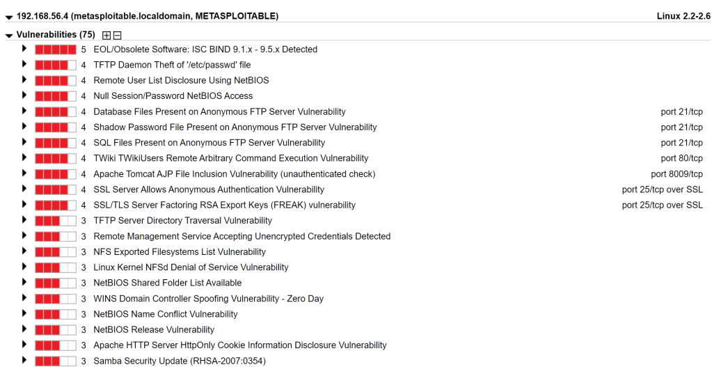 Service Info: Hosts: metasploitable.localdomain, irc.Metasploitable.LAN; OSs: Unix, Linux; CPE: cpe:/o:linux:linux_kernel